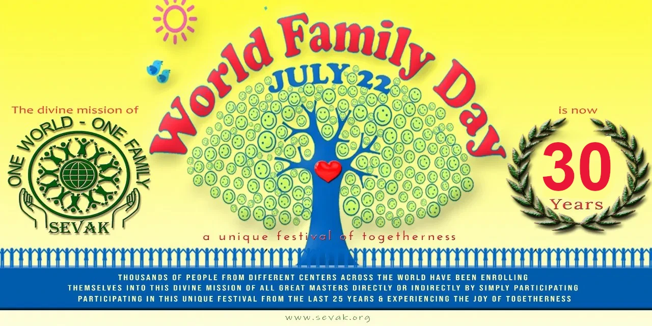 Upcoming event...July 22nd which is celebrated as World Family Day is a unique festival of togetherness and service started by SEVAK. Every year it is celebrated on a theme related to creating a better world. Previous few themes have been “Confluence of Music and Drama”, “Kindness and Care”, “Trupti Bharath”, “Global India” etc. This festival of brotherhood is being celebrated all over the globe since year 1996. Various NGOs, social reformers, children, artists, craftsmen, engineers, doctors, makers of home and various other dignitaries gather in this day long celebration and share their ideas with each other.
